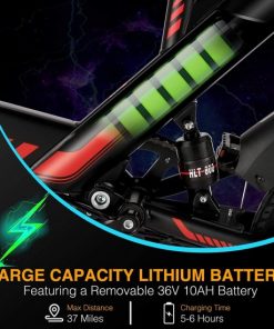 - ◆PARAMETERS: 350W Powerful scooter bikes with built in 36V 10.4Ah rechargeable Lithium-Ion battery(5-6h charging time), IP54 waterproof rating, top speed of 18.6mph), riding range from 18 miles(pure power mode) to 28miles (pedal assitant).