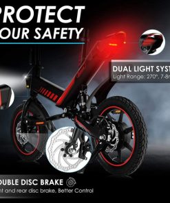 - ◆INDIVIDUALIZED DESIGN: With color block looking, sports style, streamlined matte surface, this portable mini city bike is equipped with dual disc brakes, non-slip bump handlebars, LCD battery/speed Indicator, foldable handlehead, adjustable saddle(30.7″-34.6″), 14″ anti-shock tires, front lamp and tail lights.