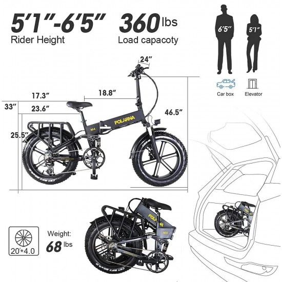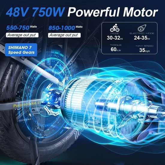 Electric Bike for Adults 20″ ebike Full Suspension 750W Motor Fat Tire Electric Bike Mountain Beach Snow Bike 48V 12Ah Removable Battery 35MPH