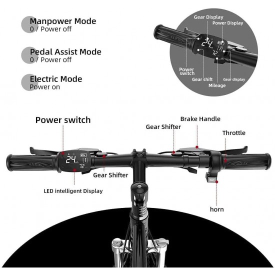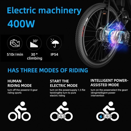 - ◆Power Systems◆ The maximum speed of the 400-watt brushless motor can reach 25Mph. Maximize the kinetic energy while ensuring the normal operation of the motor. Increase the use of electrical energy. With 26 x 2.1 inch off-road tires and enough throttle to take you through the toughest terrain. Off-road tires can tackle the most extreme terrain, including urban, beach, mountain and snow.