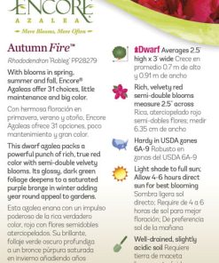 Encore Azaleas are the world’s best-selling£¬ re-blooming Azaleas. They boast blooms in Spring£¬ Summer£¬ and Fall. The Autumn Fire produces true-red£¬ semi-double velvety blooms . Autumn Fire will truly stand out in any landscape with its blazing display of color. Encore Azaleas bloom best when given four to six hours of direct sunlight daily. When planting this Azalea dig the hole twice as wide as the pot and mix slightly acidic garden soil in with your native soil£¬ then leave the top of the root ball half an inch above the ground level when filling the hole with soil.
