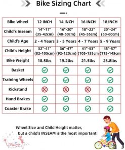 - RECOMMENDED SIZE CHART – 12″ BIKE FOR 2-4 YEARS (33″-41″) TODDLER, 14″ bike for 3-5 years (35″ – 47″) child, 16″ bike for 4-7 years (41″ – 53″) boys & girls. Note: child height may vary even at the same age, please take the height into consideration.