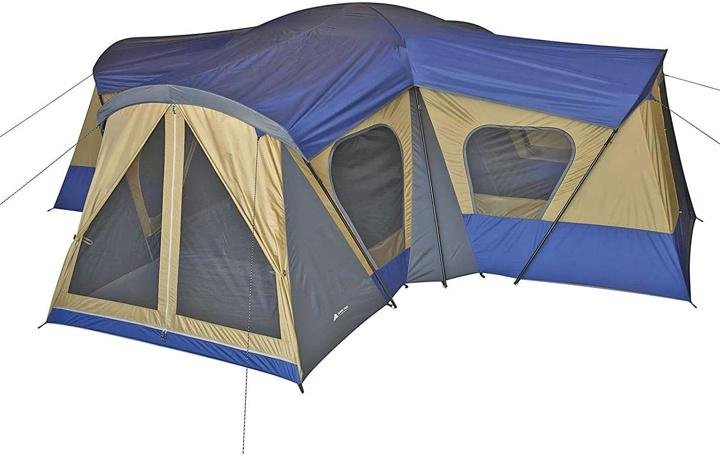- Fits up to 5 queen air mattresses E-port provides easy access to extension cord Taped fly seams prevent leakage 2-3 season tent