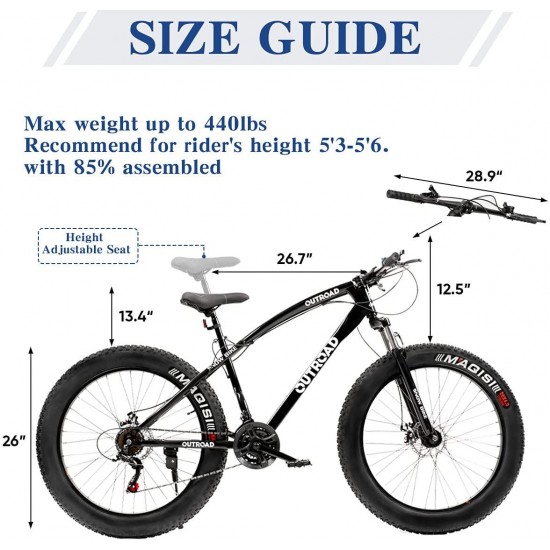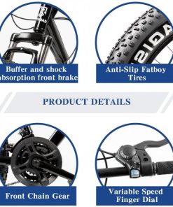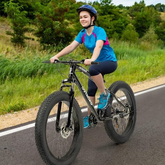 - 【ADVANTAGE】 The bike fat tire comes with 21-speeds with a Shimano rear derailleur and shift lever that can handle hilly terrains and the gear change is awesome and smooth.