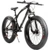 - 3. Mountain trail bike with 4.0 knobby tire (width about 13cm), has low resistance tread pattern, strong grip, high ability to overcome obstacles, not easy to puncture, more stable riding, adapt to all kinds of bad roads, e.g. mountains, deserts, trails, wilderness, highways, snow, gravel roads, etc