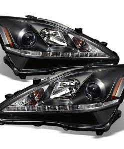 Fits 2006-2013 Lexus IS250 IS350 Black LED DRL Projector Headlights Left+RIght