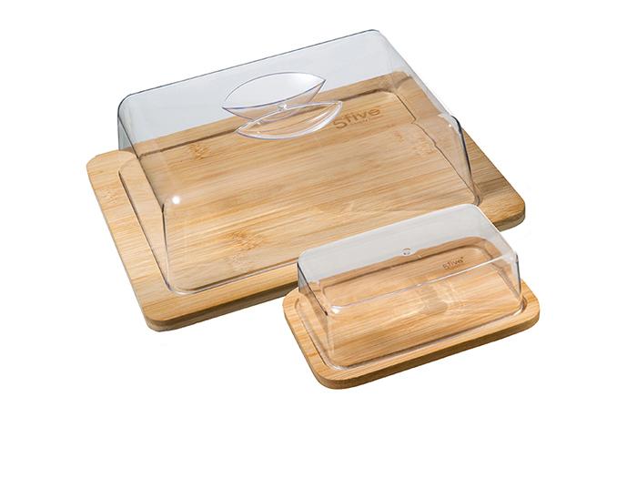 Product dimensions : L. 24 x D. 18.5 x H. 7.5 Pack dimensions : butter dish L19xl12.5xh6.0 cheese box L24xl18.5xh7.5Product Weight : 0.656 KgMaterial : BAMBOO/POLYSTYRENE