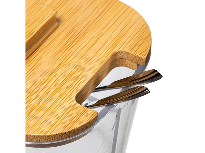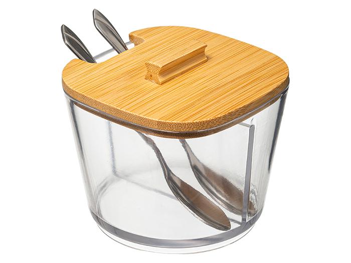 Product dimensions : L. 10 x D. 9.2 x H. 10 Product Weight : 0.160 KgMaterial : POLYSTYRENE2 bamboo spoons Separator for sugarSuitable for Food contact: YESSuitable for Dishwasher: YESSuitable for Microwave: NOSuitable for Oven: NOSuitable for zer: YESHermetic: NO