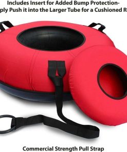 - Bump protection – separate mini tube inserts in big inflatable sled tube to provide even more support and bump absorption, providing a much smoother ride than hard plastic snow sliders