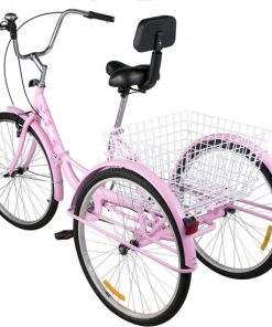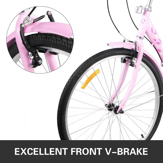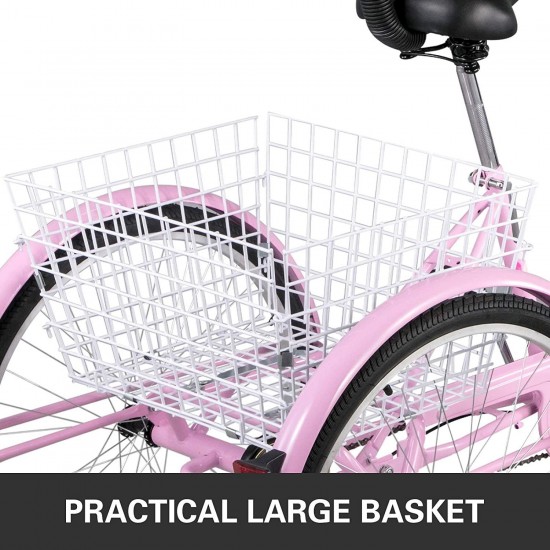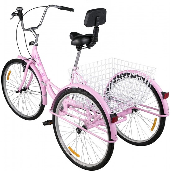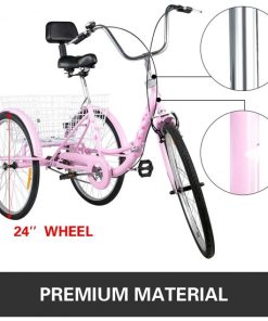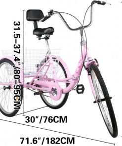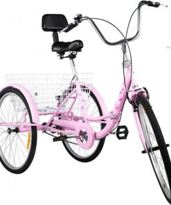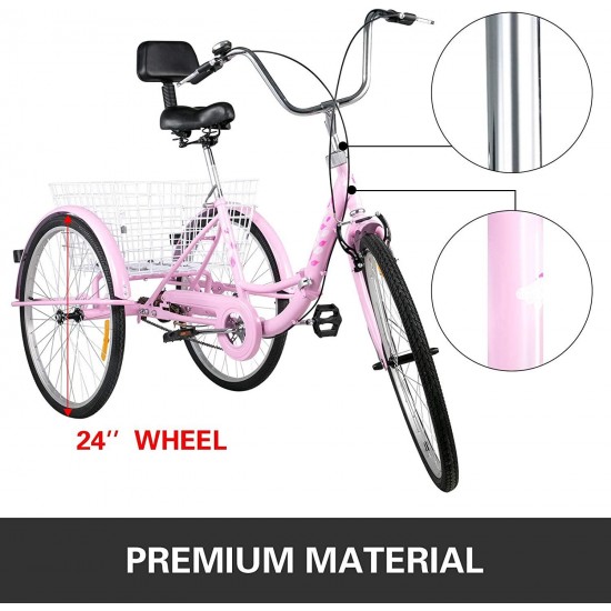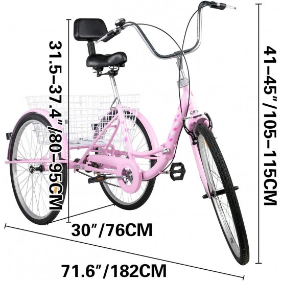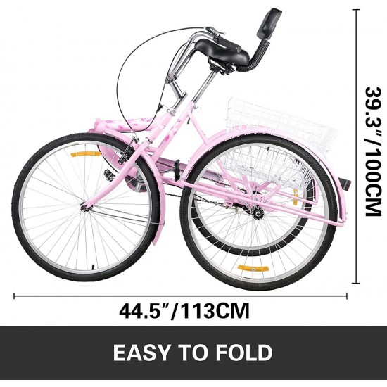 Foldable Tricycle 24’’ Wheels, 1-Speed Trike, 3 Wheels Colorful Bike with Basket, Portable and Foldable Bicycle for Adults Exercise Shopping Picnic Outdoor Activities