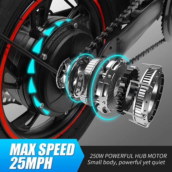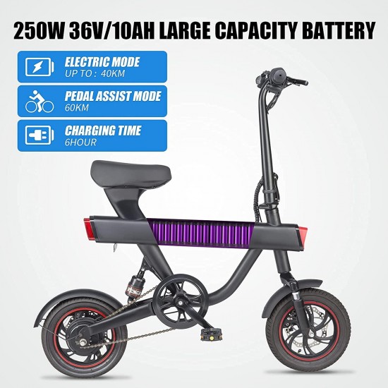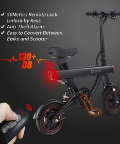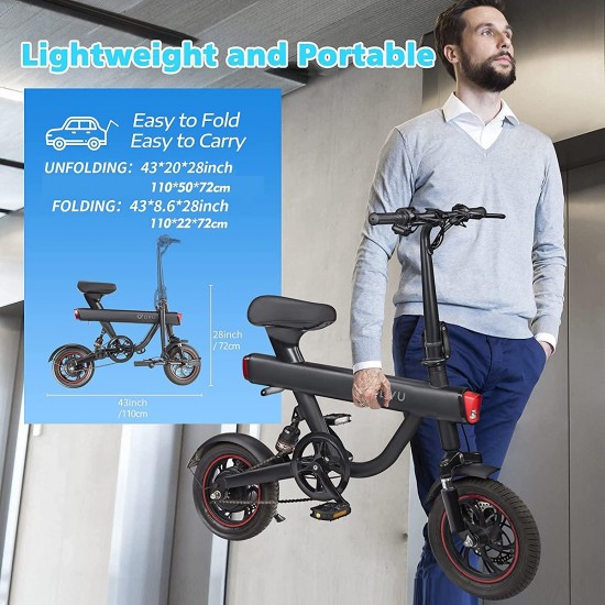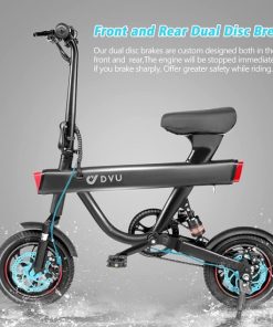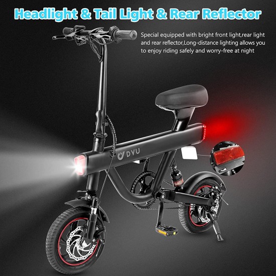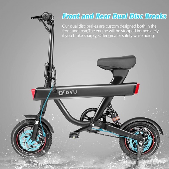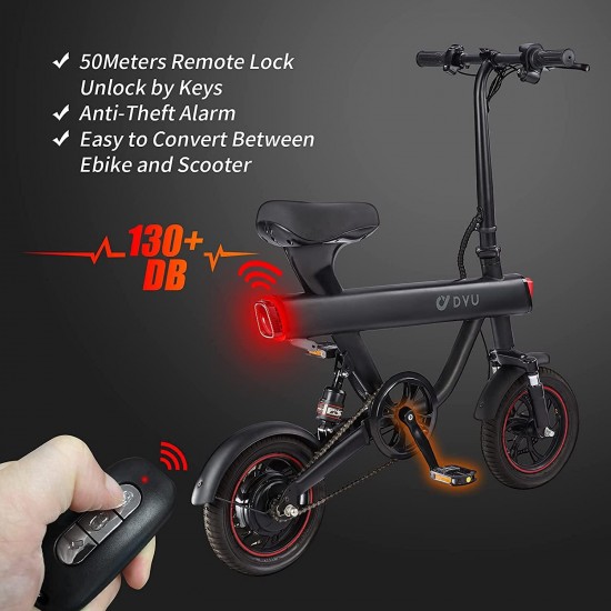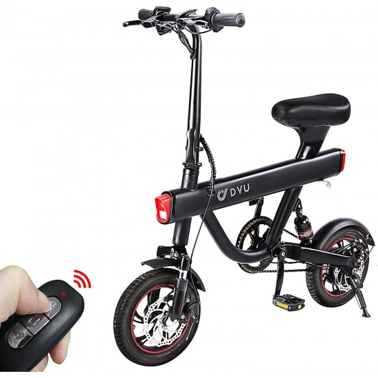 Folding Electric Bike,DYU 12″ Electric Bicycle with Remote Start/Lock Electric Bikes for Adults Teens E Bike with Pedals,Waterproof Mini eBike with Front Rear Light,Dual Disc Brakes,250W 36V 10Ah