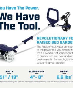 Fusion Drill Powered Cultivator, 8-Inch Tilling Width, Adjustable Length, 1-Year Limited Warranty, Model 33061