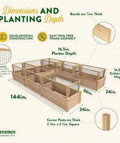 Good to grow: the 2 longer beds are 2 ft. W x 8 ft. or 12 ft. L x 16.5 in. H£¬ while the center connecting bed is 2 ft. W x 4 ft. L x 16.5 in. H£¬ boards are 5.5 in. H£¬ routed corner posts are 2.5 in. square with 3.5 in. decorative caps