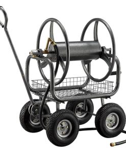 The GroundWork Hose Reel Cart contains all-terrain pneumatic tires that allow you to drag your hose across the yard with ease. Featuring a mid-sized metal wire basket£¬ you can also conveniently keep your garden tools with you while you water your plants.