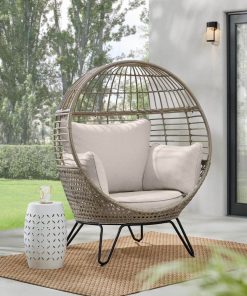 Cozy up in this Hampton Bay outdoor wicker egg chair. A charming wicker exterior delivers delightful texture to your backyard or balcony£¬ creating a relaxing space to unwind. The rust-resistant steel frame provides a sturdy seat£¬ while CushionGuard fabric effortlessly handles a range of weather conditions to combat staining and fading. Featuring Almond Biscotti beige cushions£¬ this Hampton Bay outdoor wicker egg chair cradles you in comfort on your porch or patio.