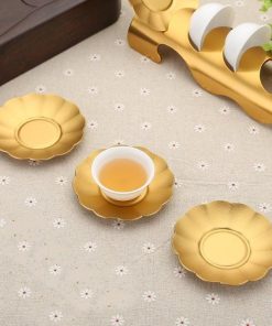 Handmade tea coaster tea cup holder retro alloy copper potholder Kung Fu tea set tea