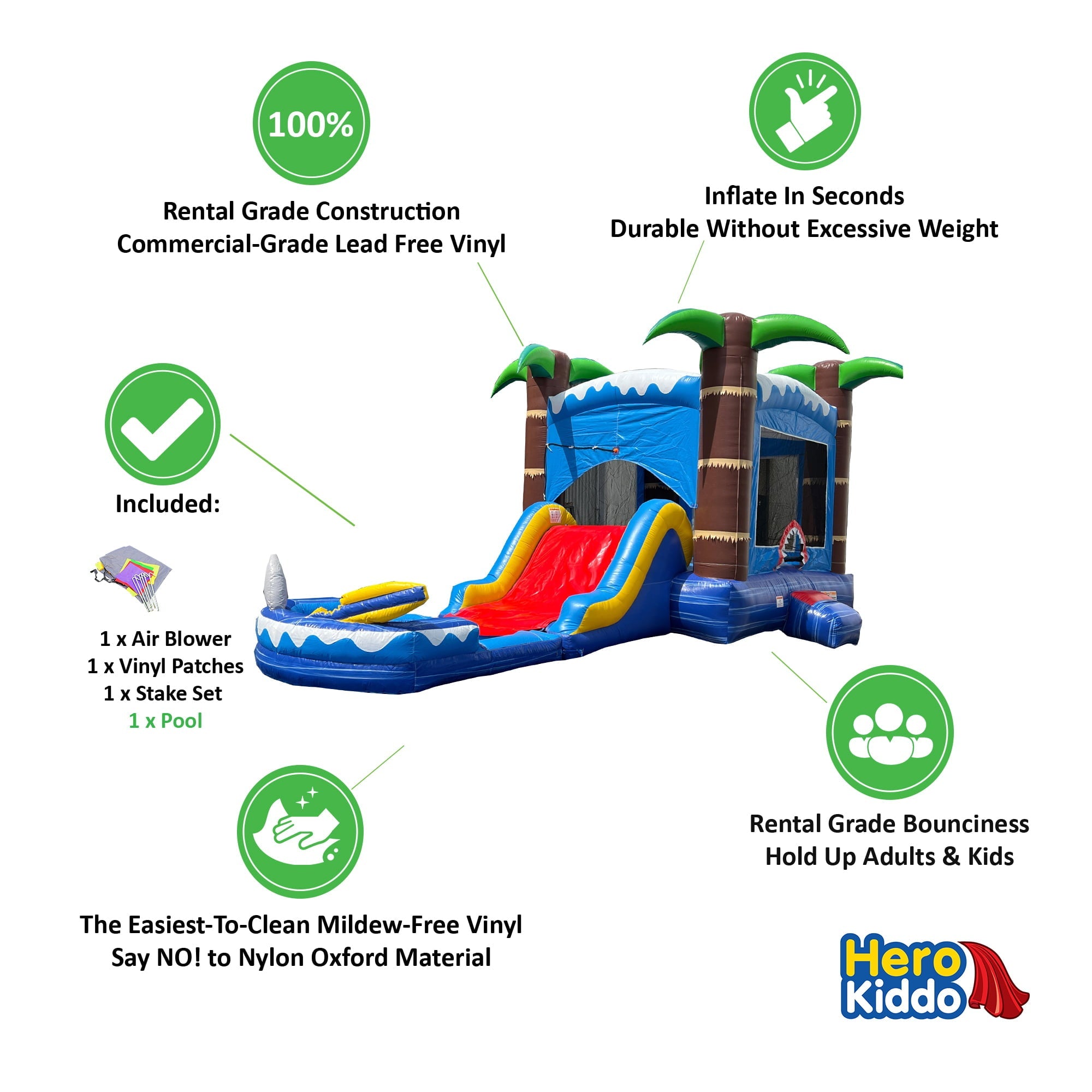 - USA DESIGNED AND ENGINEERED: HeroKiddo is a Southern California-based company that has been in the commercial inflatables market for years. We stand behind our products and want you to love them as much as we do.?