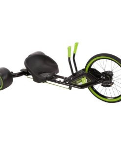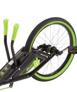When it*s time for outrageous fun, youwant the Huffy Green Machine RT, only from Walmart. The super-charged Power+ twin-tube frame is motocross-styled and ready to produce heart-pounding 180-degree spins and smooth slides. Dual-stick steering is easy to maneuver with comfortable green grips. The Huffy Green Machine RT features a coaster brake and freewheel combination for maximum control of spins and slides. Super-slick rear wheels with green trim support the fun while the front pneumatic tire with green sidewalls adds extra power. The durable steel frame features a fully adjustable bucket seat. It*s easy to make sure the legendary ride is a comfortable fit for a range of riders.
