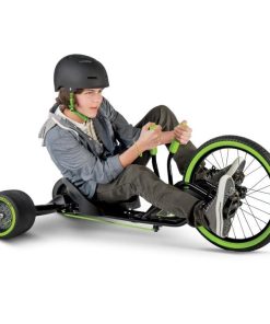 When it*s time for outrageous fun, youwant the Huffy Green Machine RT, only from Walmart. The super-charged Power+ twin-tube frame is motocross-styled and ready to produce heart-pounding 180-degree spins and smooth slides. Dual-stick steering is easy to maneuver with comfortable green grips. The Huffy Green Machine RT features a coaster brake and freewheel combination for maximum control of spins and slides. Super-slick rear wheels with green trim support the fun while the front pneumatic tire with green sidewalls adds extra power. The durable steel frame features a fully adjustable bucket seat. It*s easy to make sure the legendary ride is a comfortable fit for a range of riders.