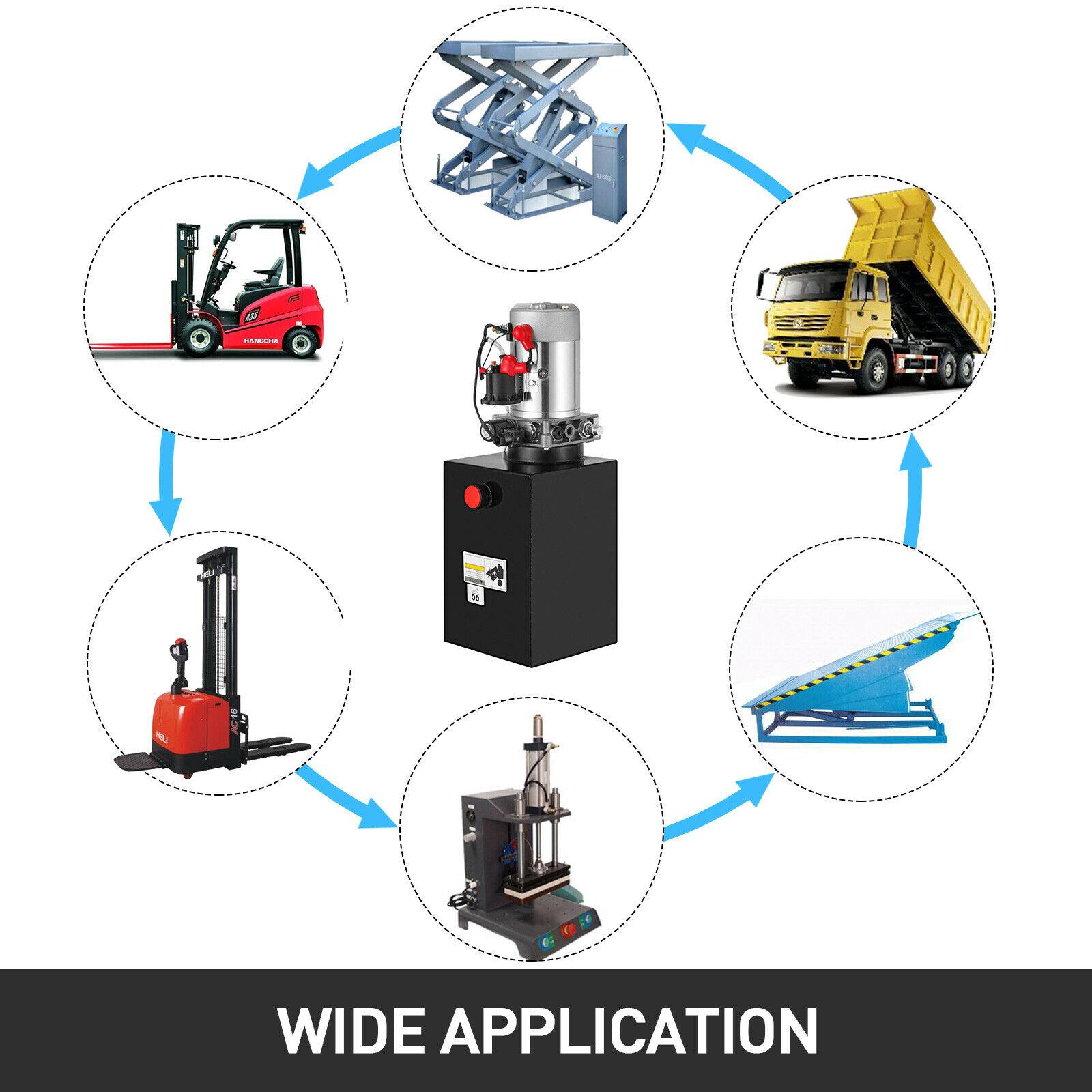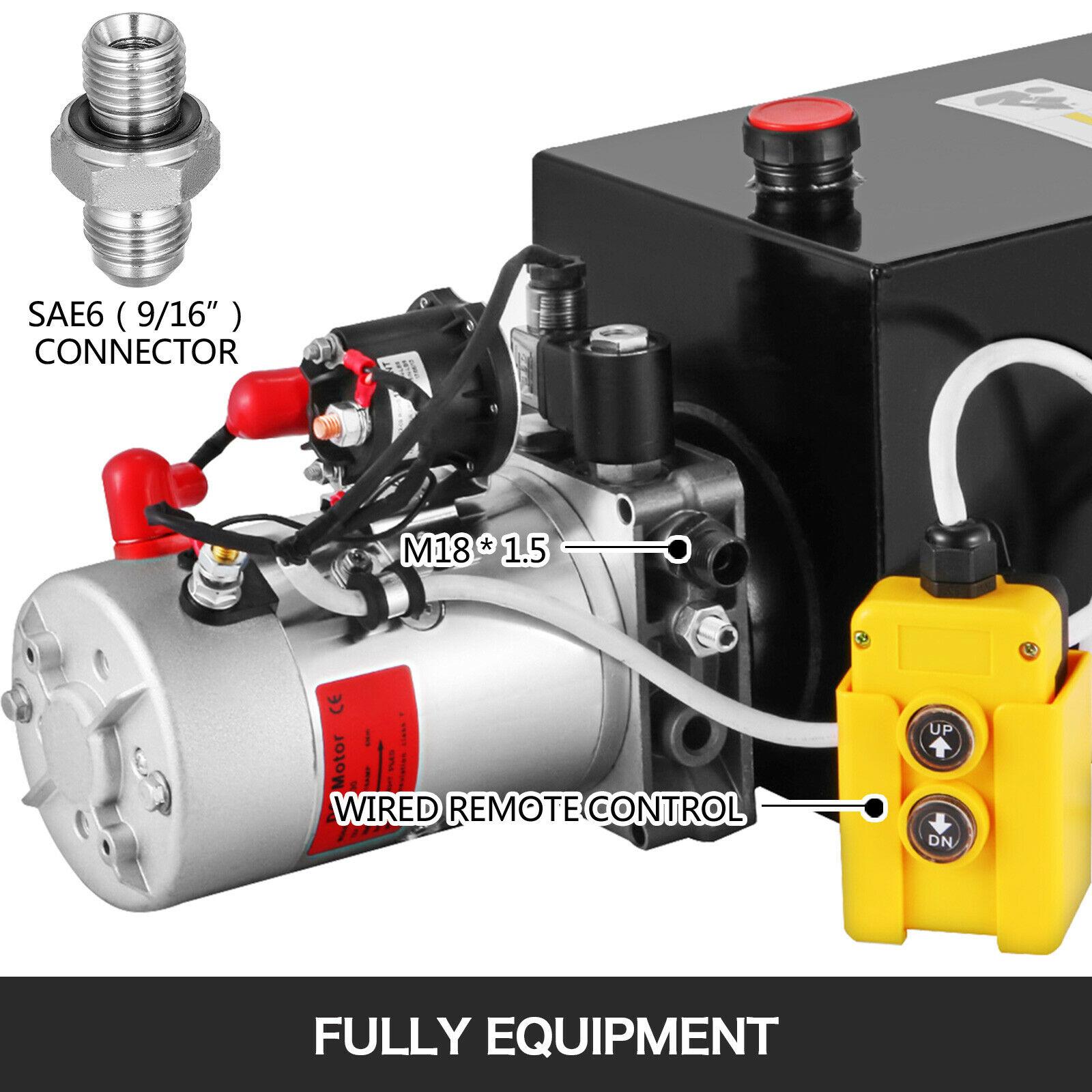 Hydraulic Pump Single Acting 12 Quart Reservoir Metal Tank 12V Pack Power Unit