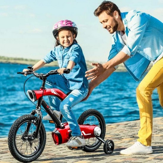 Kids Bike BMX Bike for Kids Boys Girls Bicycle Children Bike Boys Girls Metal LED Lighting Freestyle Bicycle 12 14 16 inch with Training Wheels, Kids Bike (Color : Blue, Size : 14 inch)