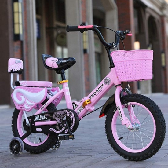 Kids Bike BMX Bike for Kids Boys Girls Bicycle Kids Bike for Boys and Girls, 12-14-16-inch, with Training Wheels and Support (Color : Pink, Size : 16)