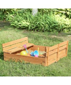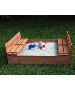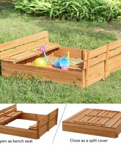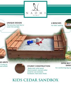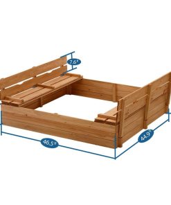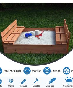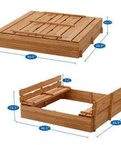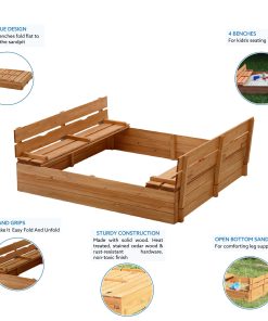 Kids Sandbox with Lid Sand Box for Kids Outdoor with Lid Cedar Wooden Sand Pit Box for Kids with 2 Foldable Bench Seats 4 ft x 4 ft Sand Boxes for Kids Outdoor with Lid Sandbox Toys for 2-8 Years