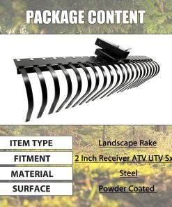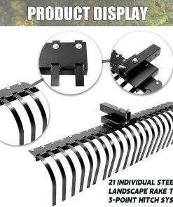 Kojem 60 inch Landscape Driveaway Pine Straw Rake Lawn Yard Beach Cleaning for ATV UTV SxS 48″ or 60″ Tool Bar & 3 Point Hitch