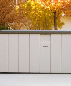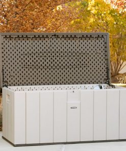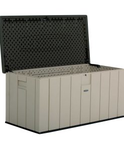 Improve your organization with this Lifetime Storage Deck Box. It features a neutral desert sand tone that matches different decor themes. This heavy-duty storage box features a simple£¬ so you can have it ready to go almost right away. It also has a lockable lid£¬ ensuring that you can keep your items securely in place. The 150-gallon storage box stays dry with a weather-resistant interior. Plus£¬ the panels and lid are UV protected so you can use it outdoors. It can even be used as a bench£¬ making it a versatile addition to any modern home.