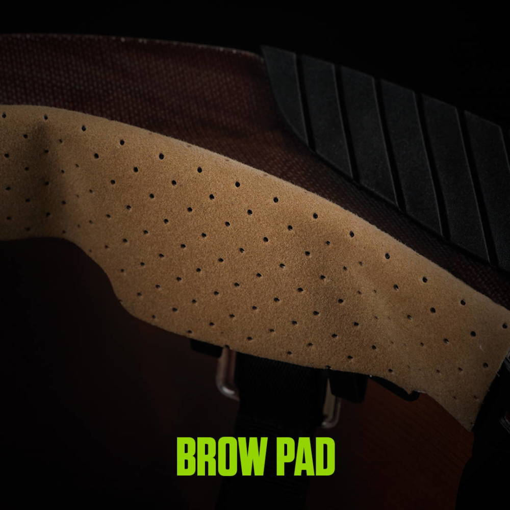 Perforated Clarino? synthetic leather comfort dome with molded EVA foam insert for additional shock absorbing protection to the top of head