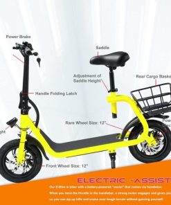 Light Weight Folding Electric Bike for Adult Electric Scooter with Seat for Adult EBike Mini Bicycles Electric Moped for Adult Commuter