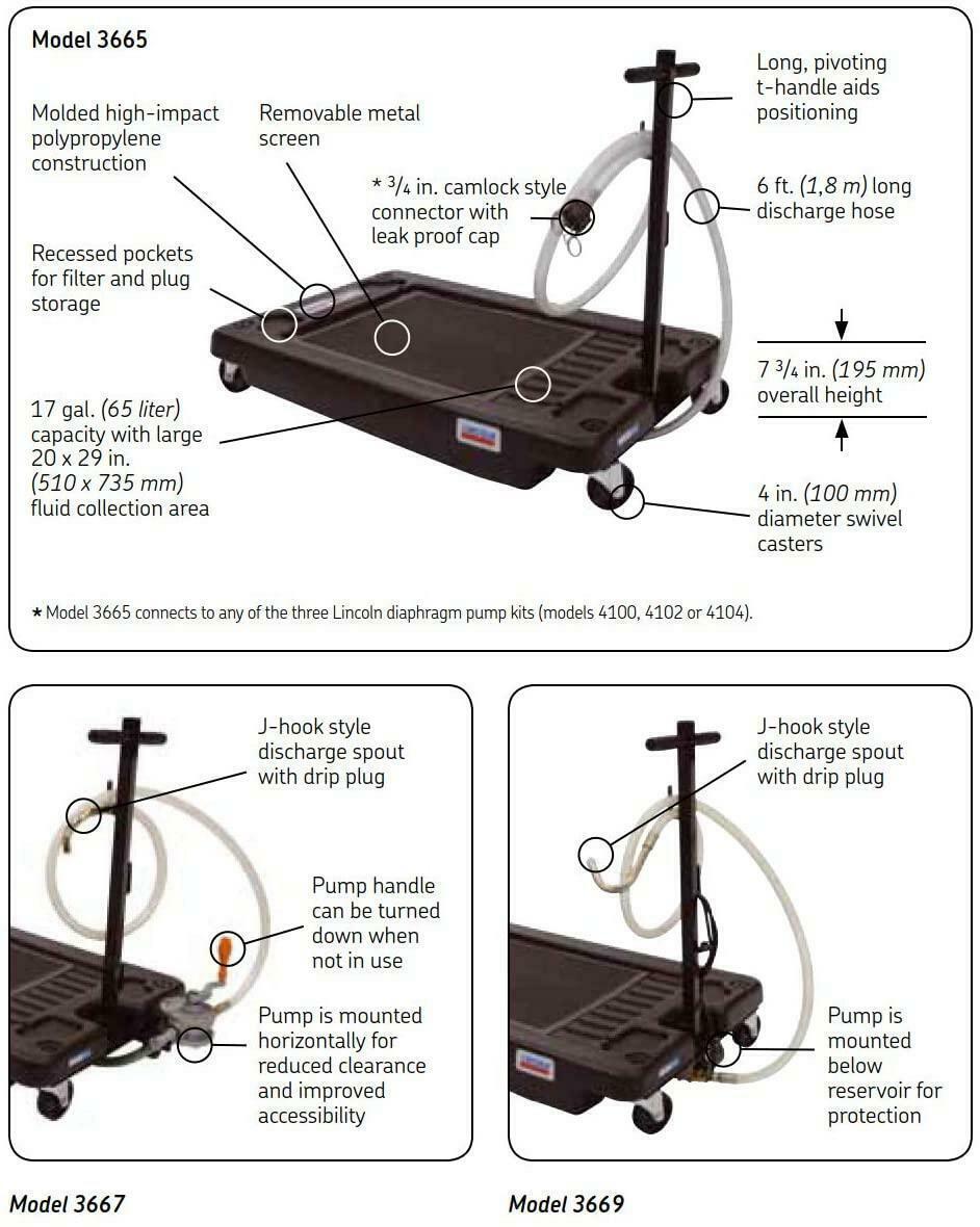 Lincoln 3669 Low Profile 17 Gallon Oil Change Truck Drain with Evacuation Pump