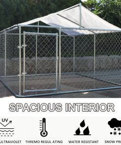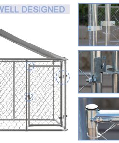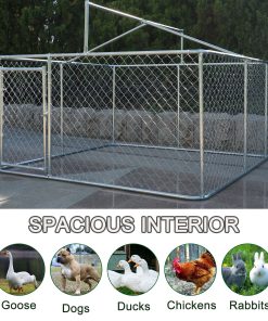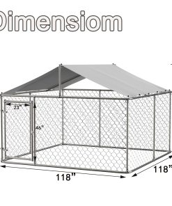 - [SPACIOUS INTERIOR SPACE]The specification of the outdoor dog crate is (118”L x 118”W x 71”H )£¬ Which is big enough to accommodate several big dogs together. Meanwhile£¬ it is also tall enough for you to clean the dog cage easily and feed your pets inside. This chain-link dog fence absolutely is a good choice for your pets to exercise£¬ playing and training