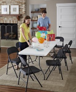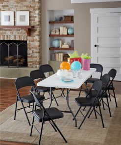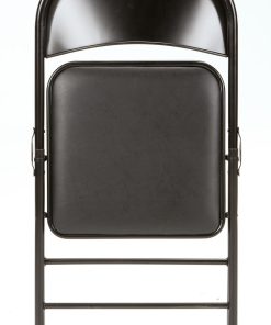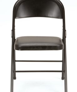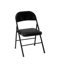 Enhance your next birthday party£¬ holiday gathering£¬ or wedding with the Mainstays vinyl padded seat and metal back folding chair! The black color of this product allows you to have a simple£¬ elegant addition to your living space without clashing with your existing color palette or furniture layout while providing extra seating for special occasions or daily use. Constructed out of a vinyl seat and steel frame combination£¬ this chair to be a long-term purchase you can use with peace of mind and no regrets! The vinyl material provides you with an easily maintained product that can withstand all kinds of messes and never fold under the pressure. The black steel legs make our chair heavy duty while retaining its stylish simplicity. Featured with this are non-marring leg tips intended to prevent slipping when in use and protect your floor’s surface from any possible damage. When not in use£¬ the fold hinges built into the chair allow this product to fold flat for easy£¬ non-invasive storage so itFTs out of sight£¬ out of mind! Pair this chair with our folding tables and make your next gathering an entertainer’s dream!