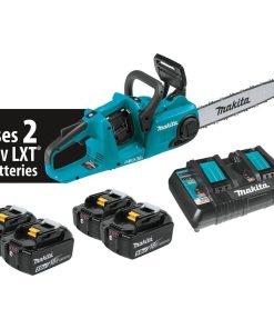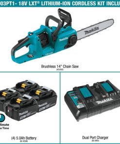 Makita 14 in. 18-Volt X2 (36-Volt) LXT Lithium-Ion Brushless Battery Chain Saw Kit with Four 5.0 Ah Batteries and Charger XCU03PT1