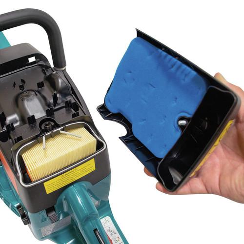 - Five-stages, foam-paper-nylon system with advance direction air flow provides clear air for better saw performance