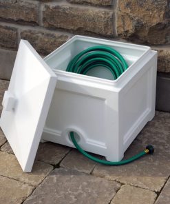 Hide your unsightly garden hose in plain sight with the Mayne Fairfield Garden Hose Bin. Designed to store and protect up to 100 feet of hose without looking like a piece of equipment£¬ this attractive and heavy-duty holder does its job with understated style. It has a hole at the back to feed your hose through and a snap-fit lid to cover it up.