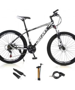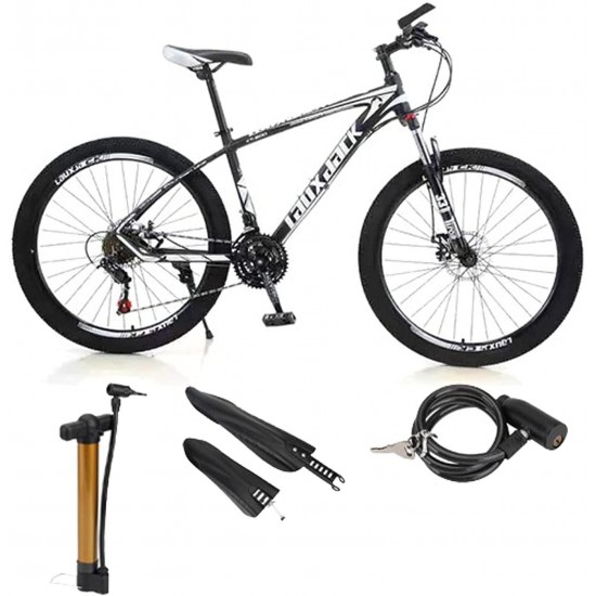 Mens Mountain Bike 27.5-Inch Wheels, Alumiunm Frame, 21 Speed Thumb Shifter, Front Suspension, Dual Disc Brakes Women Adult Bicycles White-Black w/mudguards, Bike Lock, Air Pump