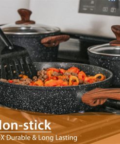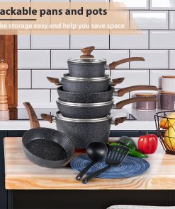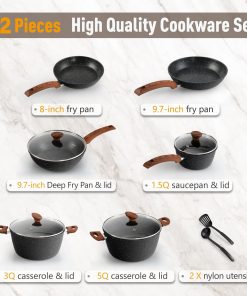 MF Studio 12 Pieces Cookware Set Granite Nonstick Pots and Pans Dishwasher Safe Black
