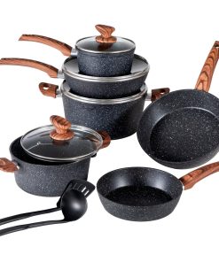 MF Studio 12 Pieces Cookware Set Granite Nonstick Pots and Pans Dishwasher Safe Black