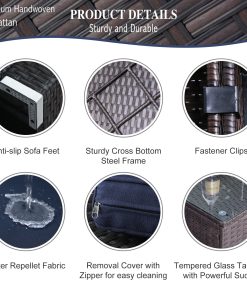 MF Studio 6 Piece Patio Sofa Set Outdoor Furniture Sectional All-Weather Wicker Rattan Sofa Navy Blue