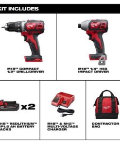 Milwaukee 2691-22 M18 18V Lithium-Ion 1-2 in. Drill Driver and 1-4 in. Impact Driver High Performance Combo Kit