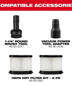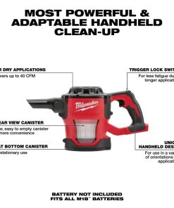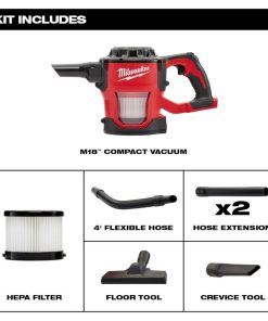 The M18? compact vacuum provides users with the most powerful & adaptable handheld cleanup tool. A high performance motor creates best in class suction for cleanup of drywall dust£¬ wood/metal shavings£¬ and common jobsite debris. With a unique handheld design£¬ the M18? compact vacuum can be used in a wide variety of orientations and applications across the jobsite. For added versatility£¬ the 0882-20 comes with (2) extension wands£¬ 4 Ft. flexible hose£¬ crevice tool£¬ floor tool£¬ and removable HEPA filter. A clear view and easy to empty canister provides added convenience. As a part of the M18? system of tools£¬ it is powered by REDLITHIUM? battery packs£¬ which deliver up to 25 minutes of run time on a XC5.0 battery pack and 43 minutes of runtime on a HIGH DEMAND? 9.0 battery pack.