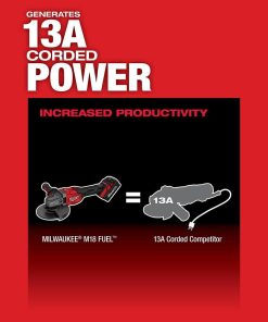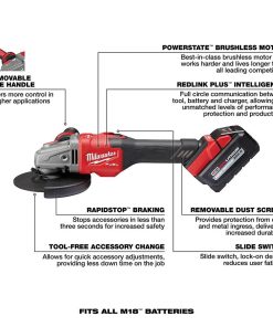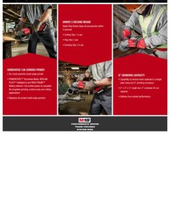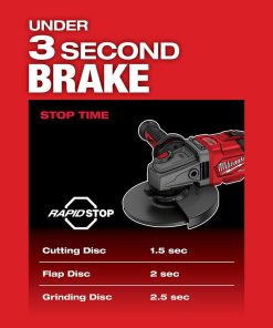 The M18? FUEL? 4-1/2 in. to 6 in. braking grinder is Milwaukee’s most powerful small angle grinder to date£¬ with a high performance brushless motor that generates 13 A corded power. The POWERSTATE? brushless motor delivers 9£¬000 RPM£¬ giving the tool the power needed to exceed performance expectations in all applications£¬ as well as longer motor life£¬ providing lower cost of ownership compared to brushed motors. Integrated Rapid Stop? braking technology stops all accessories in 3 seconds or less£¬ creating a safer user experience. By offering a full 6 in. capacity£¬ users can feel confident replacing their corded tools with the M18? FUEL? 4-1/2 in. to 6 in. braking grinder. The power and runtime delivered by the M18? 6.0 high output batteries provides the user with more material removed per charge£¬ making users more productive and efficient on the jobsite. Tool-free accessory changes using the FIXTEC nut and guard adjustments mean less downtime during work. Grinding wheel sold separately.