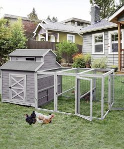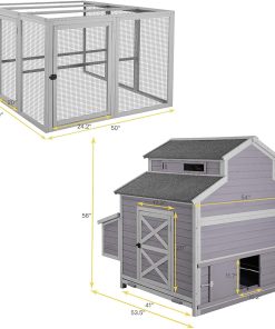 This Morgete chicken coop comfortably houses up to 10 chickens and features an extended roosting bar which providing more space for chickens. Galvanized wire walls and a series of locks on each access point keep your household animals safe inside. House comes with two removable sliding trays for easy cleaning and metal wire fencing for ventilation. Our deluxe chicken cage equip a built-in nesting box that divides into three rooms to storage eggs. OVERALL DIMENSIONS: 115.1″(L) x 54.0″(W) x 56.0″(H)