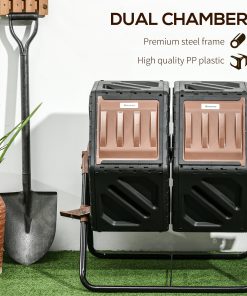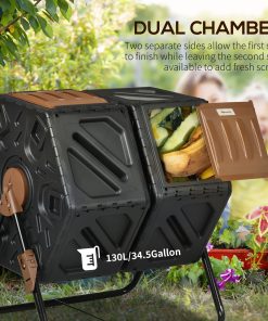 Close the door and create quality compost with this Outsunny tumbler composter. Fill the composter with garden waste and kitchen scraps with the spacious dual chamber and turn the handle 5-6 times every few days£¬ and you can expect rich£¬ fertile compost in just 1-3 months. Use our garden compost bin to give your plants the nutrient-dense fertilizer they crave£¬ and watch your garden bloom like never before.
