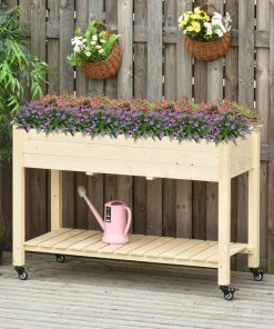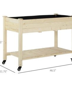 Outsunny Natural Wooden Raised Mobile Garden Bed with Non-Woven Bag 845-365