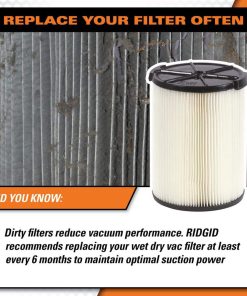Includes 2 1-Layer Standard Wet/Dry Vacuum Replacement Filters for dry messes