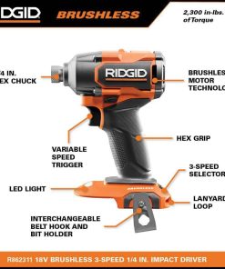 Impact Driver: Powerful brushless motor delivers 2,300 in./lbs. of Torque and 20% faster speed of drive compared to the R86039 18V Brushless Impact Driver