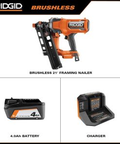 Ridgid 18V Brushless Cordless 21-Degree 3-1/2 in. Framing Nailer Kit with 4.0 Ah Battery and Charger R09894KN